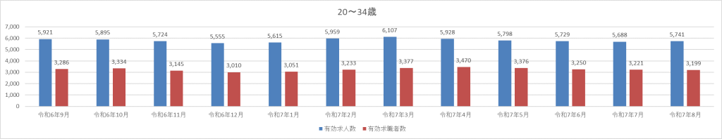 20~34歳層の即戦力層は安定を維持しています。