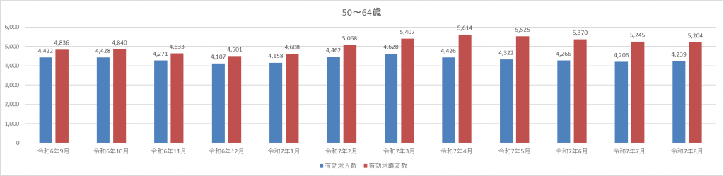 中核となる35〜49歳層とシニアの50〜64歳層は、小幅ながら改善傾向にあります。