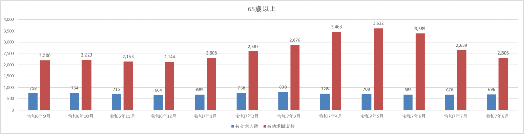 また、65歳以上は相対改善が大きい一方で水準はなお低位にとどまっています。ただ、増加幅は小さいですが相対伸びは最も大きく、シニア就業の受け皿拡大や短時間・軽作業求人の増加が考えられます。