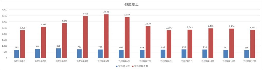 反対に、年齢が上がるほど求人が求職を上回りにくくなり、1倍を下回りやすく、仕事を探す人のほうが多くなりやすい傾向があります。