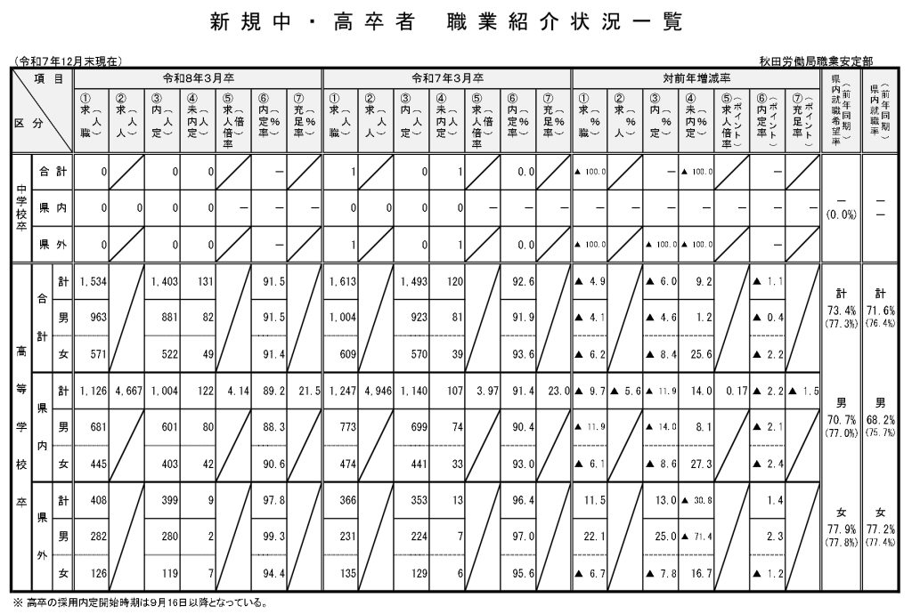 【新規中・高卒者職業紹介状況(令和7年12月末のデータ)】